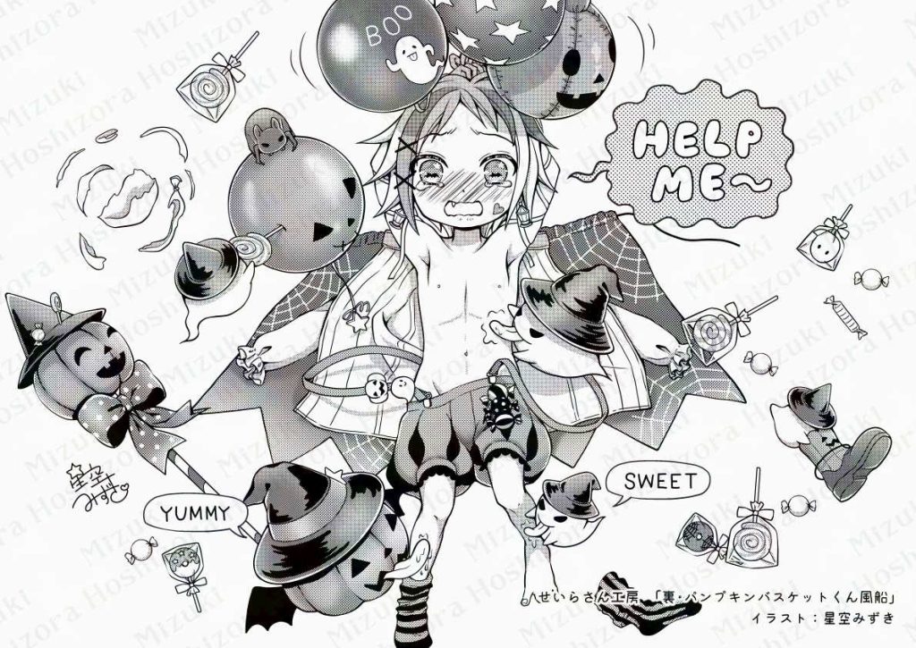「裏・パンプキンバスケットくん風船」のイラスト。