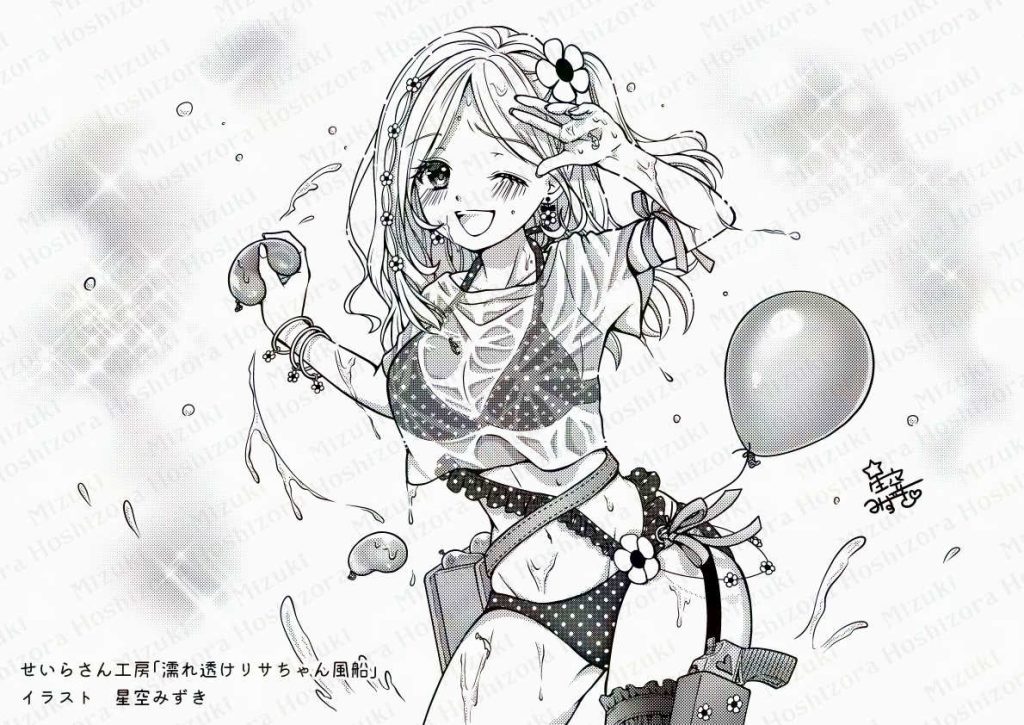 シャツが水に濡れて水着が透けちゃってるのですが、これをモノクロで表現するのは難しかった…!