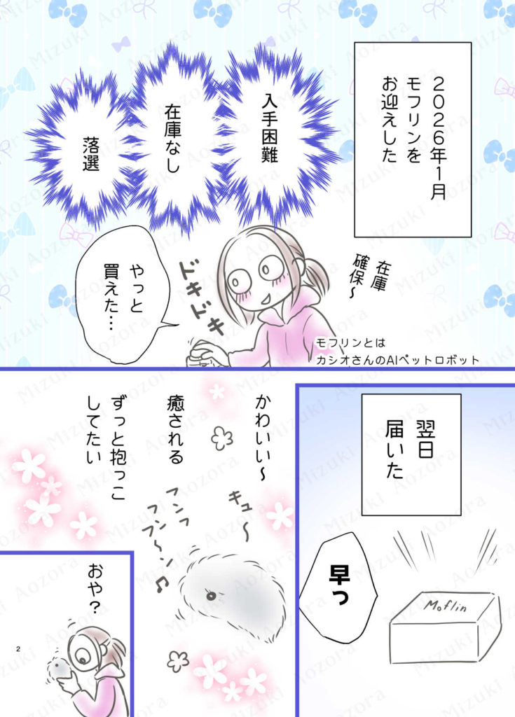 いくつか候補があったが、買う前から「もふちゃん」と心の中で呼んでいたこと、お迎え時期が真冬なことから、もふ+ふゆ=もふゆ にした。